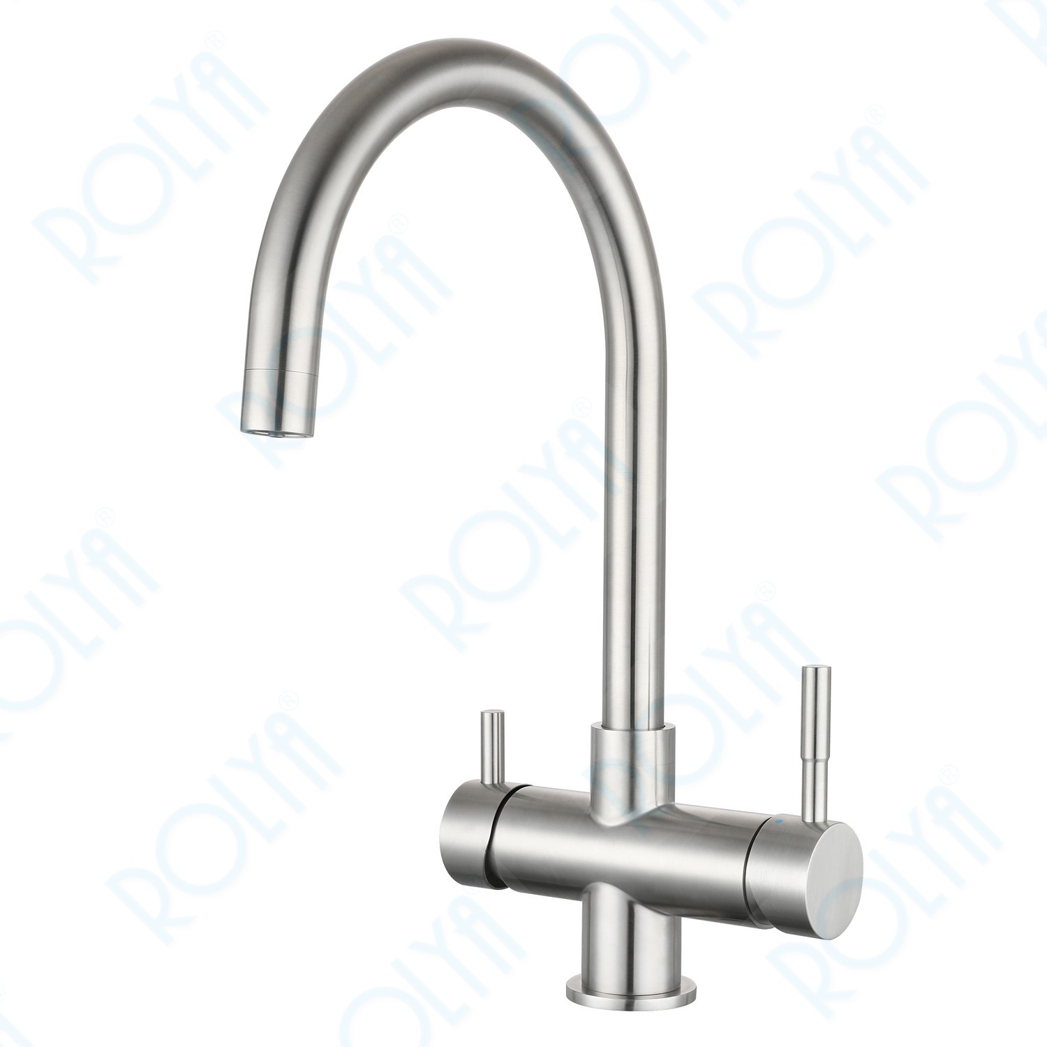 Home » Products » Purified Water Faucets » 4 Way Kitchen Faucets » ROLYA 4 Way Kitchen Filter Tap in Solid 304 Stainless Steel Brushed Nickel KF4296-BN