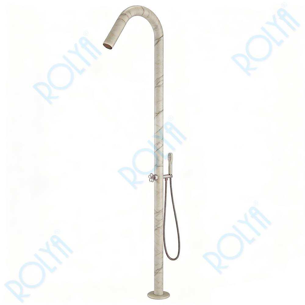 Designed for a tool-free, floor-mounted installation, this shower column stands sturdy without the need for wall support. It connects easily to a standard garden hose, making it a flexible addition to any backyard, pool area, or garden without complex plumbing requirements.