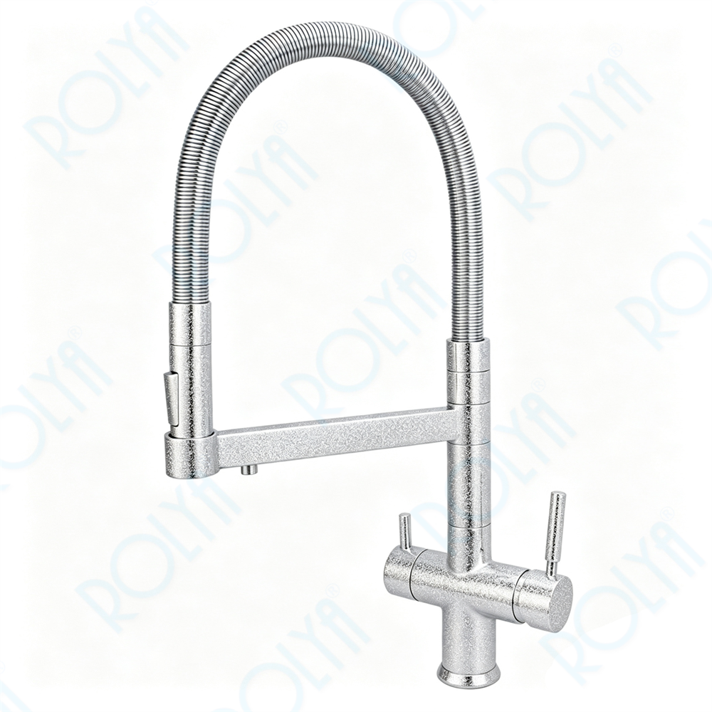 Home » Products » Purified Water Faucets » 4 Way Kitchen Faucets » ROLYA Pull Down 4 Way Kitchen Faucet Brushed Satin Silver KF4098-SS
