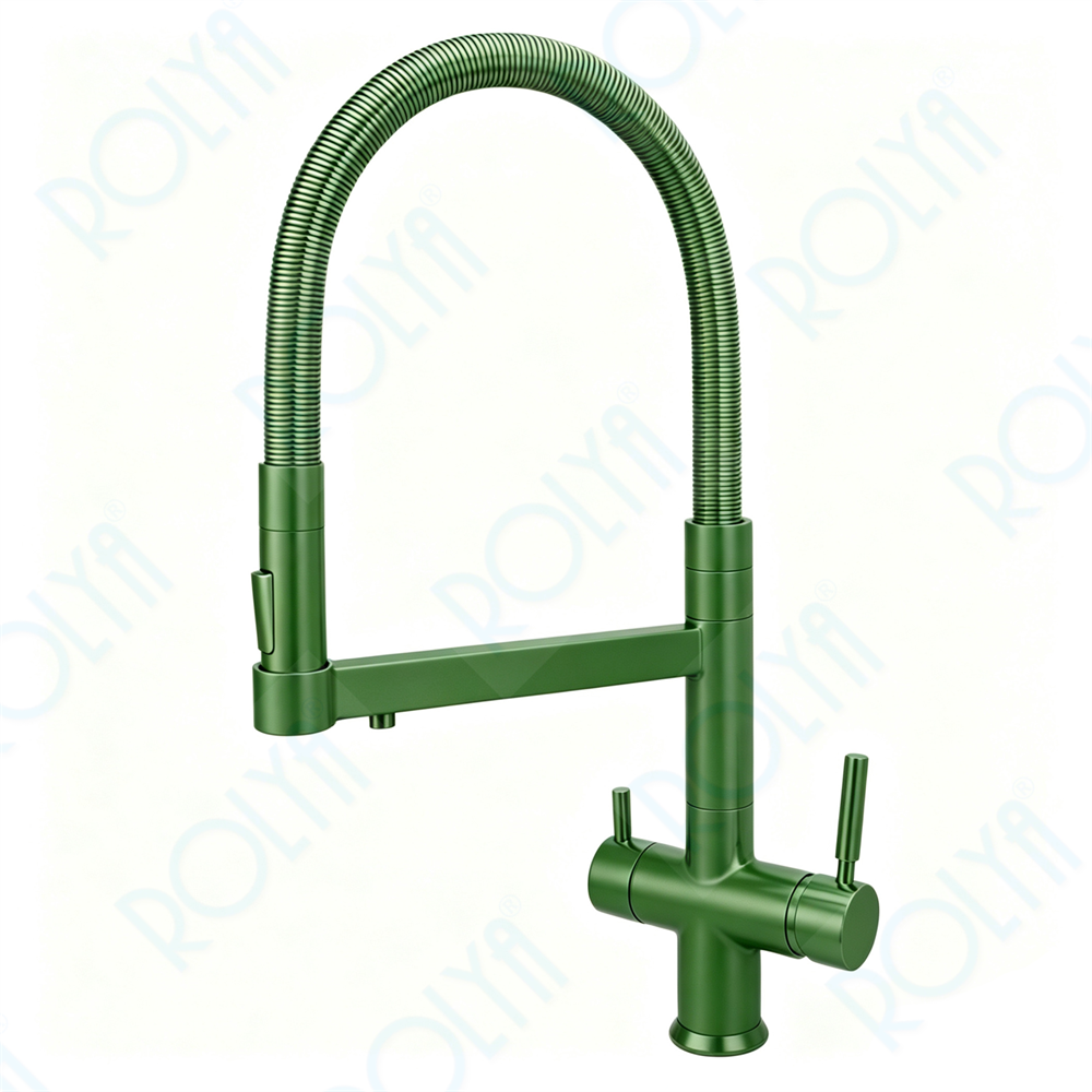 Home » Products » Purified Water Faucets » 4 Way Kitchen Faucets » ROLYA Pull Down 4 Way Kitchen Faucet With Soda Water Moss Green KF4098-MG
