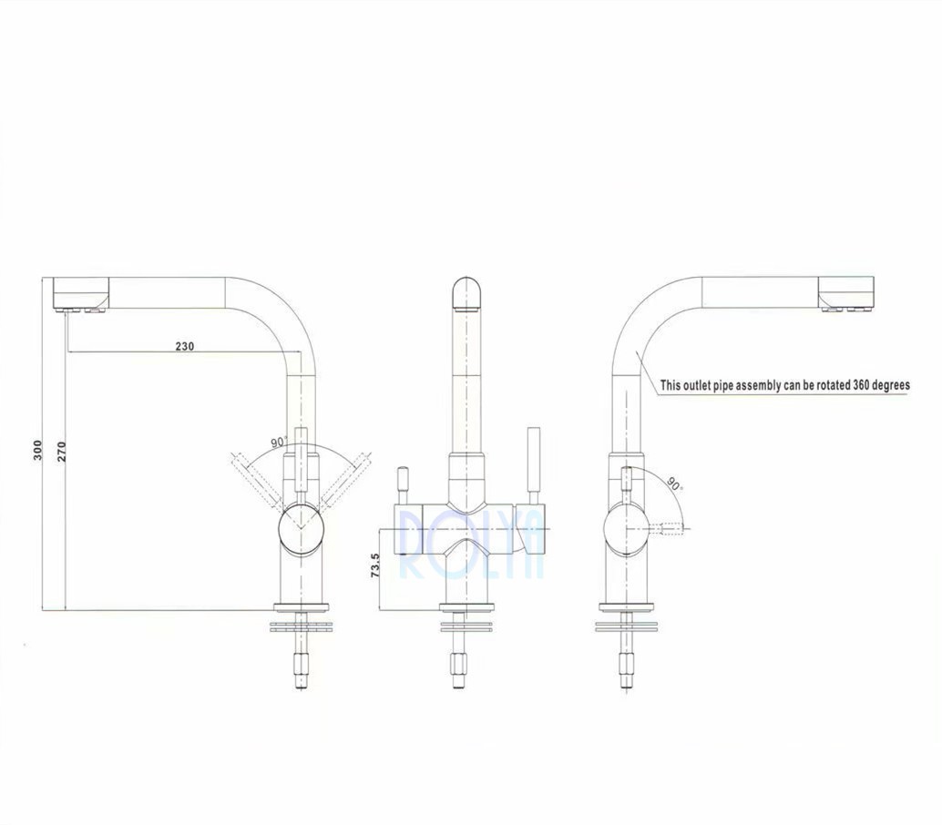 » rolya brushed nickle ro water reverse kitchen faucets 3 way water filter taps